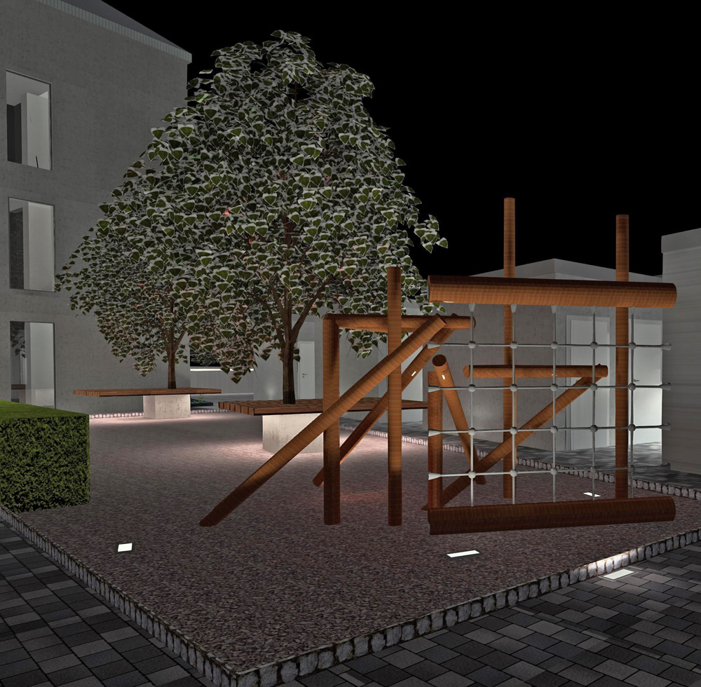 Erstellung einer Beleuchtungsberechnung und Rendering für die Außenanlagen eines Pflegeheims.
